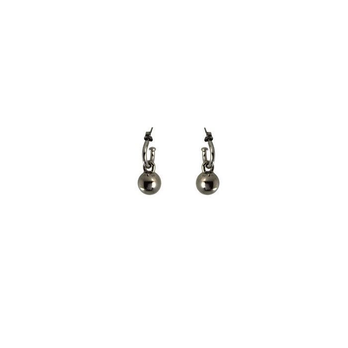 Brinco médio em metal níquel, base argola semi-aberta, pingente maciço de esfera, alto brilho. O pingente pode ser retirado, proporcionando duas opções de estilo e tarraxa.