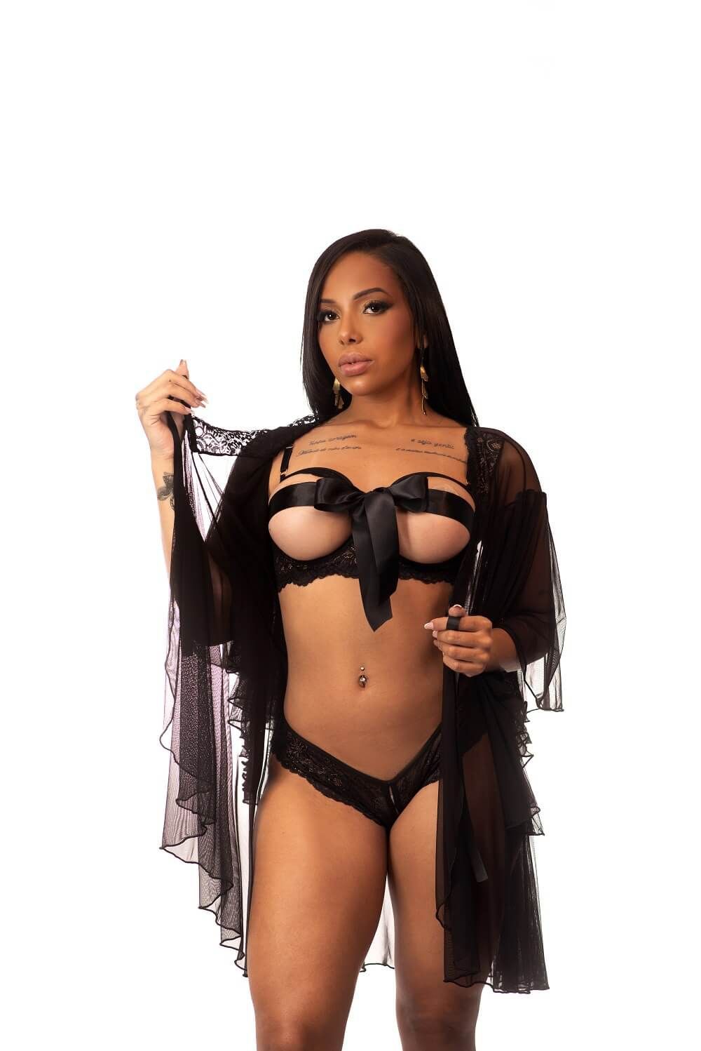 Esta peça é impressionante para revelar suas segundas intenções. Sua transparência é fantástica e com certeza vai deixar seu parceiro(a) altamente excitado. Além disso, ele possui detalhes em renda para deixá-lo ainda mais instigante. Todo confeccionado em tule e detalhes de renda, que traz sofisticação à peça. Seguindo propósito de oferecer uma vestimenta linda e confortável.