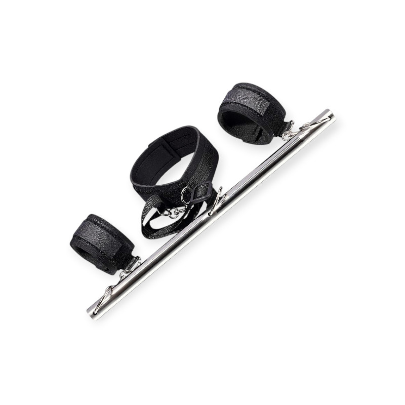 A barra de aço inoxidável conecta as algemas de nylon, criando um sistema de imobilização preciso e seguro. Cada detalhe foi pensado para proporcionar conforto e intensidade, permitindo que os parceiros experimentem novas dinâmicas de poder e submissão. O design ergonômico garante que a restrição seja não apenas eficiente, mas também esteticamente atraente.
