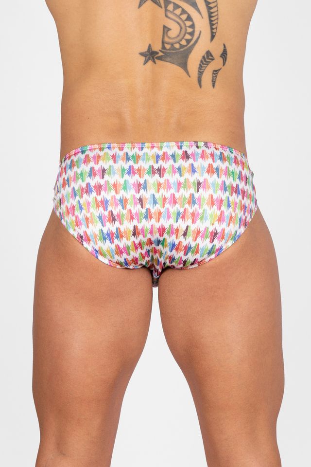 Com um fundo branco dragão colorido. Possui saqueira com contorno projetada para maior conforto e suporte, sua modelagem pensada especialmente para valorizar qualquer bumbum, e parte de frente. Confeccionado em fluity, um tecido um tecido maleável, uma malha superfina, fresquinha e confortável.